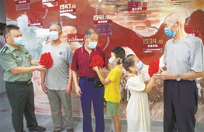 给八旬“兵爷爷” 戴朵大红花