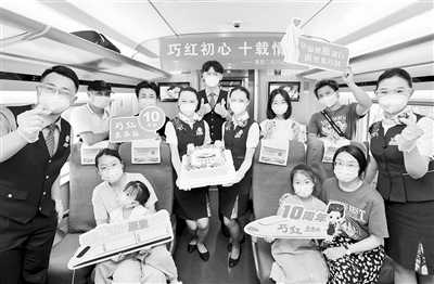 近日,在G1451次列车上,杭州客运段高铁二车队巧红乘务组开展了创建十周年庆生活动,乘务人员与旅客一起过生日,并为旅客送上定制的纪念小礼品。据悉,该乘务组创建十年来,坚持把旅客满意作为自己的工作目标,用真诚、温馨的服务守护旅客一路平安。