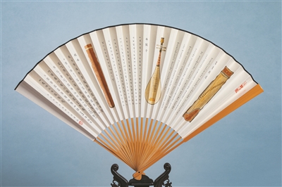 | 徒弟作品 《声之形市玉骨白纸扇》 项楷祥 展品介绍: 《莲韵细刻彩绘画金乌木扇》作品以杭州亚运为主题创作而成,中间是奥体中心,画面里还有桂花、钱塘江浪潮、雷峰塔、六和塔,展现了浓郁的杭州特色。它还是把双面异象的扇子,正面是彩色的,背面是金色。创作时候,运用了檀香扇制作的传统技法——拉花,但由于此件作品的材料是乌木,乌木相对比较硬,所以比檀香扇的拉花,难度更高。《声之形市玉骨白纸扇》的创作灵感来源于古代乐器与音律。作者希望通过这种方式,让更多人关注传统文化、学习传统文化、传承传统文化。 |
