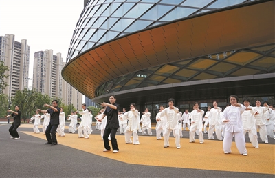 昨日,是我国第14个全民健身日。一早,记者来到杭州市拱墅运河亚运公园,看到不少市民正在开展健身运动。这些年,我省全民健身公共基础设施日趋完善,全民健身活动蓬勃发展,“提高国民素质,实行全民健身”的理念也早已深入人心。图为拱墅区太极拳爱好者们正在打太极拳健身。记者邹伟锋 摄
