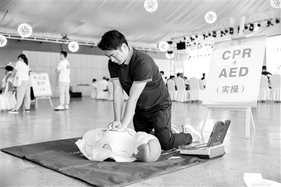 本报讯 记者程雪 通讯员王沙报道 “先生,你能听到我说话吗”“病人昏迷没有呼吸,请这位先生为我拨打120”“检查病人口腔无异物,马上对病人进行心肺复苏”……日前,安吉县灵峰街道总工会举办首届新就业形态劳动者应急救护员技能大比武,共有50余名来自餐饮、住宿、家政、保安、售货等行业的职工参与本次比赛。