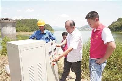 | 受持续晴热高温影响,桐庐县分水镇砖山村的山塘水库干涸,农作物灌溉受到严重影响。近日,桐庐县分水镇砖山村组织党员志愿者参加抗旱保收行动,铺设输水管道、安装水泵配电箱,从天溪湖中取水浇地。通讯员徐军勇、王佳宁 摄 |