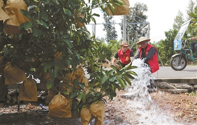 | 昨日,在玉环市龙溪镇天香文旦专业合作社文旦基地里,龙溪镇梅岙村老党员陈礼生组织党员组成抗旱突击队,顶着烈日、冒着酷暑,架设水泵,抽水灌溉文旦果树,缓解多日来高温无雨的旱情,助农抗旱保苗夺丰收。通讯员詹智 摄 |