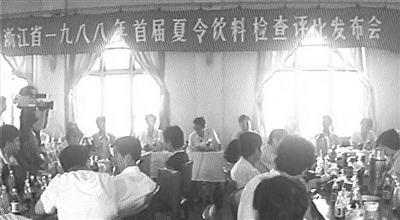 | 浙江省1988年首届夏令饮料检查评比发布会。 杭州市档案馆供图 |