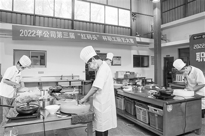 宁波舟山港北仑矿石码头分公司近日举行了第三届“红码头”杯职工厨艺大赛,比赛由“专业组”和“大众组”组成,26名职工通过烹饪指定菜和拿手菜的形式展开竞技,该公司膳管会委员担任评委,对30道参赛菜肴从搭配、创意设计及色、香、味、意、形、养等方面进行综合打分,以技能竞赛提高职工食堂服务质量,满足职工由“吃得饱”向“吃得好”的需求转变。