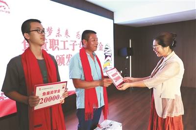 本报讯 通讯员江文辉报道 为凝聚人心,鼓励员工子女成长成才,8月17日下午,浙江鱼童新材料股份有限公司举行“筑梦未来,为爱奋斗”2022年鱼童员工子女奖学基金颁发仪式,共有2名优秀员工子女获得了“鱼童奖学金”共计4万元。