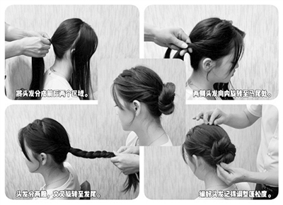 步骤五:沿顺时针方向将头发盘起并固定好。