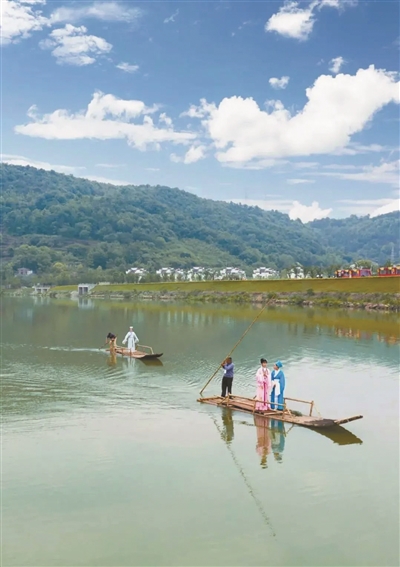 蓝天之下,山水之间,戏楼祠堂里,江南软语,越音绵延。小镇古戏楼仿故宫畅音阁而建,是戏迷们心中最好的“越剧金色大厅”,《追鱼》《十八相送》《桑园访妻》等越剧经典折子戏就在这里轮番上演。水袖勾连、眉目传情;死生挈阔、与子相悦……每一折戏都在情意绵绵地向观众倾诉。