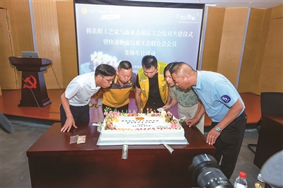 | 模范职工之家与新业态工会结对共建,为快递物流企业职工举办集体生日会 |