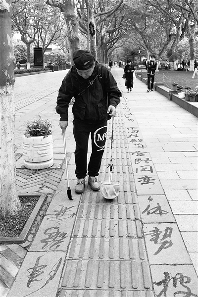 在他的指导下,我也提起大笔试着写了写。米国藩提醒我:“要想写好字,贵在坚持”。于是,我们约定,我每周三到西湖边向他请教。我还将米国藩写“地书”的视频上传到网络上,与书法爱好者们分享。没想到视频发布后,点击率很高。目前已有4个书法爱好者加入写“地书”的队伍。
