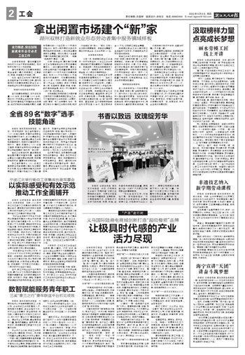 建设电商展示馆、职工书屋、红船走廊、共享直播间、网红打卡点、创意大街等六大文化阵地,为职工提供多元化活动场所,打造美好精神家园。