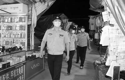 图为黄岩分局城西派出所民辅警在辖区岙岸夜市巡查,向商户了解治安情况,同时宣传反诈、防盗知识。通讯员蒋忠慧 摄