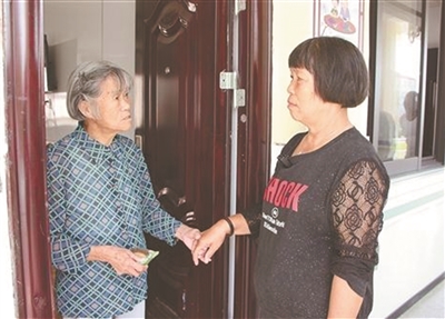 | 林凤英去托养机构看望老人。通讯员江文辉 摄 |