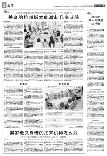 不过一个不可回避的问题是,与北京、上海等地相比,杭州的托育服务还处于起步阶段,今后还有很长的路要走。