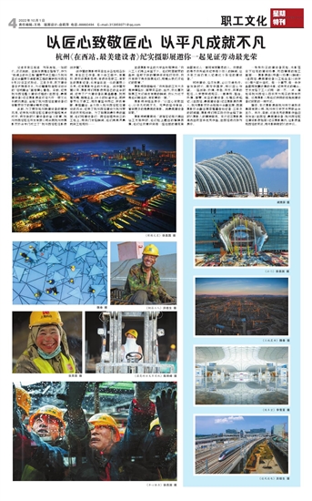记者羊荣江报道 列车奔驰,一如时代,滚滚向前。在新发展理念指导下,作为“轨道上的长三角”重要节点工程以及杭州亚运会重要交通配套工程的高铁杭州西站9月22日正式投运。三年多来,数万建设者日夜挥洒汗水,为这幅高标准规划设计的“站城融合”画卷精心着色。日前,记录杭州西站整个建设过程的《在西站,最美建设者》纪实摄影展在该站大厅一楼文化长廊内展出,诠释了杭州西站在建设者们辛勤劳动下的精彩蝶变过程。