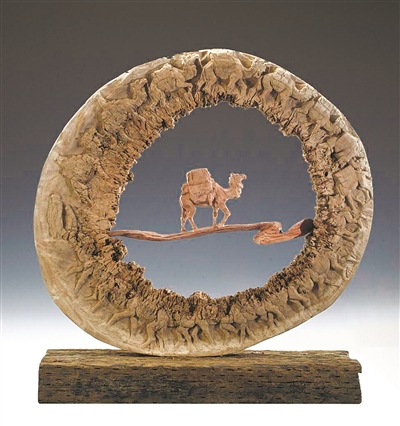 “我的创作体会是,中国画的泼墨法会不断把人带入崭新的意境,受此启发,我的劈雕艺术也在‘似与不似’间寻找另一个切入点。以势造形,以形取神,继而以神来之笔强化劈纹的特殊肌理效果,就能充分发挥物体的空间张力,并且把创作的思维融化在意象之中。”高公博说。