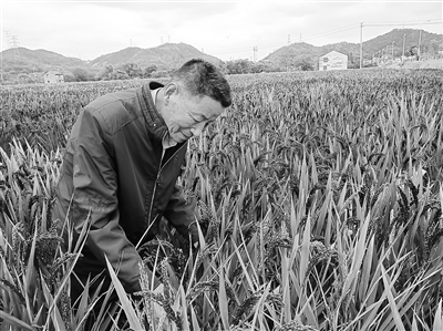 在这片稻田里,沉甸甸的稻穗在微风中轻轻摆动,呈现出一派丰收的喜人景象。据种粮大户陈方利介绍,尽管今年出现持续高温干旱的天气,但由于培育管理得当,估计亩产400公斤左右紫糯米稻谷不成问题,如果销售状况良好,明年他将扩大种植面积。