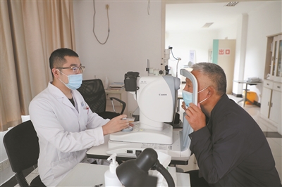 | 图为参加疗休养的职工正在进行健康体检。记者李国峰 摄 |
