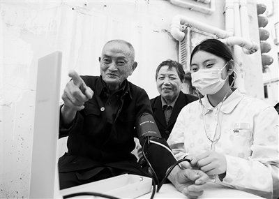 近日,在台州市路桥区路北街道松塘村,来自当地台州章氏骨伤医院的党员医护人员,上门为老人健康检查并科普健康知识。近年来,路北街道联合当地多家医院,组织起一支由党员医护人员组成的健康志愿者服务队伍,每个月常态化为老人开展上门送健康服务。通讯员蒋友青 摄