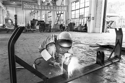宁波舟山港北仑矿石码头分公司机修分部近日开展电焊工技能考核比武活动。48名焊工通过理论知识笔试、焊接托辊支架的实践竞技,展现了电焊工匠风采和高超的焊接技艺,为推进产业工人队伍建设改革和港口高质量发展提供技能型人才支撑。通讯员蒋晓东、李源水 摄