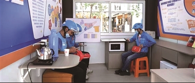 其中,微笑亭提供常态化服务,服务于来往的职工群众和户外劳动者,提供政策方面咨询和管理,开展夏季送凉茶、冬季送姜茶等服务;暖心亭主要开展特色轮班公益服务,为职工提供法律咨询、家电维修、中医问诊、口腔保健、眼镜清洗等服务;“小哥之家”主要为“小哥”提供休憩、学习的场所。