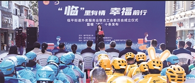 阵地建好,服务也要跟上。去年,临平街道总工会正式成立街道外卖服务业联合工会,并推出“暖新十条”,包括为“小哥”提供能量补给服务、志愿服务、防疫服务、法律援助服务、技能培训服务、政策咨询服务、文体服务、就业服务、交友服务、“微心愿”服务等十项内容,解决“小哥”就业、权益保障、休闲娱乐等难题。