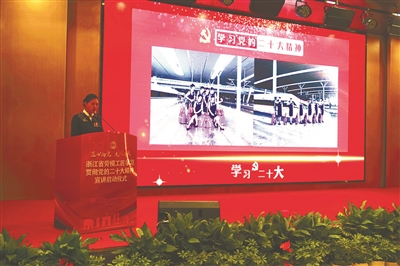 首场宣讲活动邀请了全国劳动模范、国网杭州供电公司滨江供电分公司服务拓展班班长徐川子,全国五一巾帼标兵、中国铁路上海局集团有限公司杭州客运段高铁一车队列车长车菲菲两位党的二十大代表来到现场,为湖州市劳模工匠宣讲团成员代表、企业职工代表和浙江水利水电学院师生代表宣讲党的二十大精神。