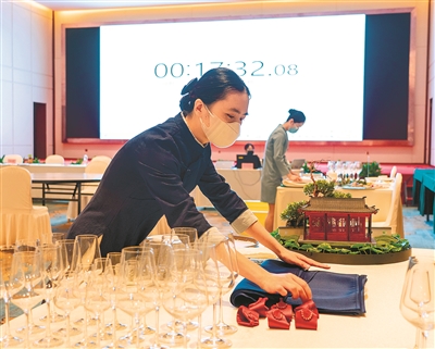 经过激烈角逐,杭州市职工疗养院陈洋荣获原创疗休养产品展示竞赛项目一等奖;东阳横店影视城杨彤荣获中餐主题宴会摆台竞赛项目一等奖;东阳横店影视城王冬颖荣获中式铺床及开夜床竞赛项目一等奖。