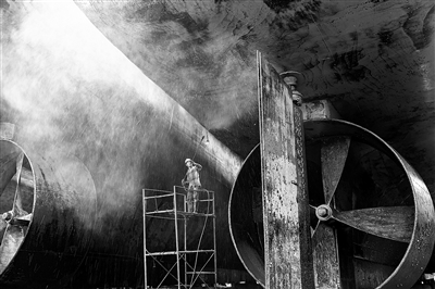 每年4月30日至9月15日是东海法定休渔期。这期间,渔船归港休整,渔民靠岸赋闲,需要检修的渔船此时就会被送去检修。奉化桐照双山船厂是当地渔船两所“保健医院”之一,每年有大量渔船在休渔期来这里“问诊求药”。大到船舶动力,小到船体“整容”。宁波市摄影家协会会员、自由摄影师董小飞,将镜头聚焦工人们冒高温、顶酷暑,在露天环境中进行船体打磨、冲洗、焊接、喷漆等作业场景,艺术地体现检修现场特有的浓烈色彩、船体线条和作业氛围。