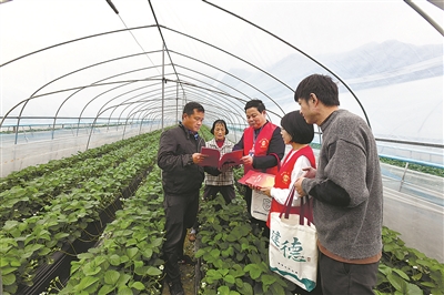 11月16日,建德市司法局的党员普法志愿者来到洋溪街道友谊村的草莓大棚里,向种植农户宣讲党的二十大精神,赠送党的二十大报告单行本以及相关普法手册资料,做到宣讲与普法两不误。