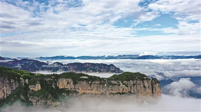 11月17日上午,仙居县景星岩风景区云雾缭绕,群峦若隐若现,置身其中,如入人间仙境。