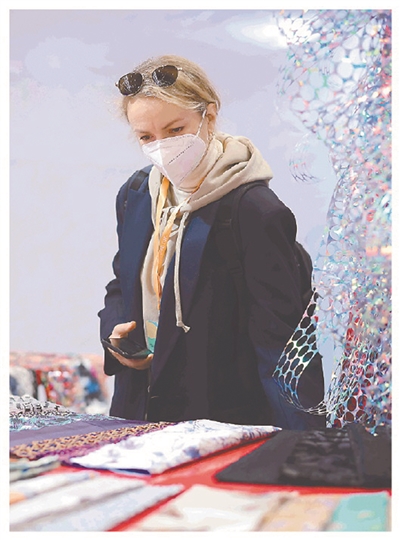 “这个地毯多少钱,我们要200条。”展会现场,阿富汗客商抚摸着一块地毯,用中文熟练地询价。