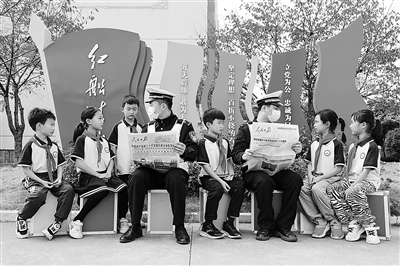 为切实把传播党的二十大精神与交通安全宣传深度融合,连日来,浦江县公安局交警大队民警化身“宣讲员”,深入辖区中小学校,以互动交流的方式面对面向中小学生传播党的二十大“好声音”,普及冬季交通安全出行常识,让党的二十大精神和交通安全知识“声”入童心。图为浦江交警在辖区郑家坞中心小学向学生宣讲党的二十大精神。