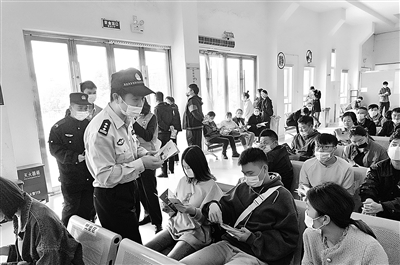 近日,台州市公安局椒江分局章安派出所民警来到位于台州市椒江区章安街道的台州市公安局机动车驾驶员培训学校,对参加驾驶证考试的人员进行防诈骗宣传,指导下载注册国家反诈中心APP。图为民警向参加驾驶证考试的人员讲解防骗知识。