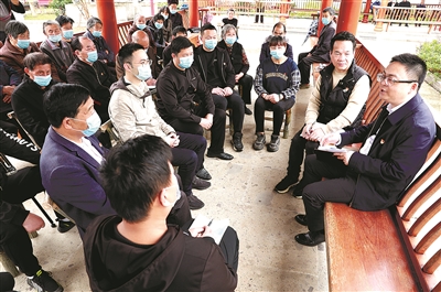 近日,在温岭市新河镇楼岙村文化长廊,当地的宣讲人员正在向干群传“党音”。近来,温岭市新河镇组织领导干部、青年党员、文艺骨干组成宣讲团,进村头、到地角、去长廊,把“普通话”转化为“本地话”,让党的二十大精神飞入寻常百姓家。