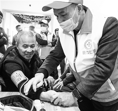 近日,全国烟草行业劳动模范郑利民,作为衢州市衢江区仁爱红十字志愿服务队成员,走进该区大洲镇恒康残疾人之家,开展“情暖冬日”活动。在现场,他为残疾人测血糖、量血压,提供健康咨询。为便于志愿服务,他特意考出了健康咨询等相关资质证书。
