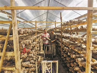 | 市劳模叶长文指导菇农香菇采摘技术。 |