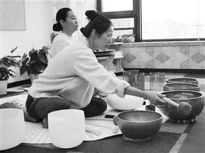 | 颂钵疗愈师通过颂钵的音频,引导大家进入冥想状态。 |