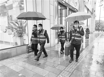 | 杭州市救助管理站工作人员上街开展救助劝导服务。记者张浩呈 摄 |
