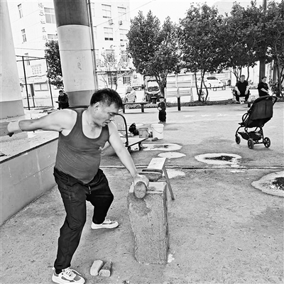 等到徒手劈砖技能驾轻就熟,冯忠义接着挑战徒手劈石。那些年,冯忠义劈过的不同形状的石头不计其数,从小到大,从细到粗。