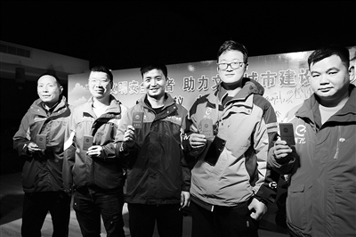 | “我们入会啦!”小哥们展示工会会员证。 通讯员黄瀚 摄 |