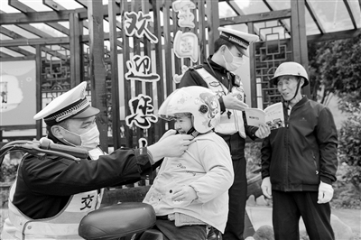为切实提高农村摩托车、电动自行车驾乘人员的交通安全意识,全力保障冬季群众出行安全,连日来,浦江县公安局交警大队组织民警深入辖区村庄,通过例举典型交通事故案例、讲述驾乘电动自行车违法载人、不佩戴安全头盔存在的严重安全风险等警示宣传形式,让“一盔一带”交通安全理念走进乡村,深入民心。图为12月11日,浦江交警在向村民讲解正确佩戴安全头盔方式,普及“一盔一带”交通安全知识。