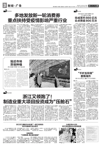 浙江又领跑了! 制造业重大项目投资成为“压舱石”
