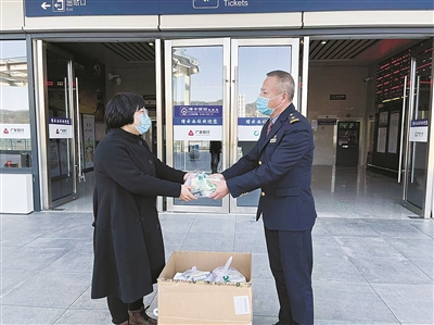 近日,在高铁缙云西站,国药控股丽水有限公司将装有退烧药、感冒药等药品的防疫礼包送到了铁路工作人员手中。