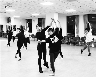| 陈晶晶(前左)在指导舞蹈排练 |