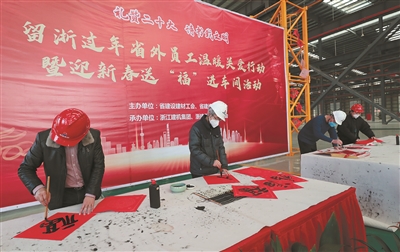 | 浙建集团书画协会老师们为职工现场书写“福”。 |