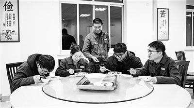 “小孙,快来,一起去食堂,等会就能吃上朱班长的海鲜米豆腐啦。”同行的陈师傅叫住了小孙。到了食堂,只见朱志达正在厨房间里忙前忙后地张罗着。