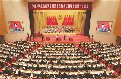 | 昨日上午,中国人民政治协商会议第十三届浙江省委员会第一次会议在省人民大会堂隆重开幕。 记者邹伟锋 通讯员林云龙 摄 |