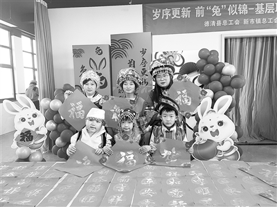本报讯 记者程雪 通讯员吴文霞报道 “来接‘福’啦!”日前,德清县总工会、新市镇总工会联合开展“留岗送温暖 工爱在身边”活动,进企业为留德职工们送“福”字、送好运,还邀请了少数民族职工一起做五彩小圆子、包饺子、写春联,猜字谜……让职工们其乐融融迎新春。