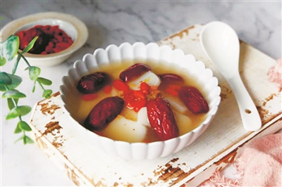 现在不兴吃那么多糖了,可用冰糖作调味,多加水,只放一两个鸡蛋,七八片年糕,装成一小碗,当作早餐,或是节食时用作晚餐,方便而精致,三五分钟就可搞掂。